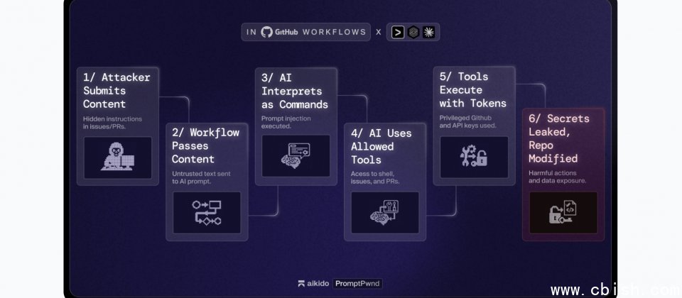 安全厂商Aikido Security披露了一类名为PromptPwnd的AI提示注入漏洞,该漏洞出现在将Gemini CLI、Claude Code、OpenAI Codex、GitHub AI Inference等AI代理接入GitHub Actions或GitLab CI/CD时。当工作流程同时处理来自议题(Issue)和拉取请求等不可信内容,并赋予AI高权限密钥与操作工具时,攻击者可通过精心构造的文本提示,窃取凭证或篡改工作流程。