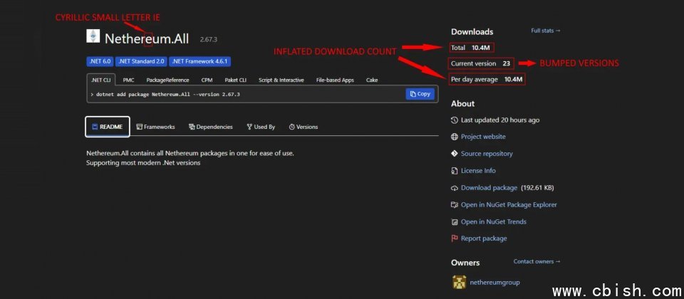 此次调查始于研究人员10月发现的Netherеum.All,该软件包仿冒以太坊集成库Nethereum,并利用同形字混淆名称,几乎难以辨别。研究团队后续比对发现,多个NuGet账户分批上传的软件包在恶意行为和代码特征上高度一致,且大多复制合法功能,将恶意代码隐藏在少数关键流程中,以提高人工审查与自动检测的难度。