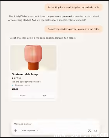 至于Brand Agents,则是微软为品牌官网打造的AI导购系统,定位为商店自有网站的AI店员,它以品牌语调与商品资料为基础,回应消费者提问、协助比较与理解差异,让官网本身具备对话式销售能力。