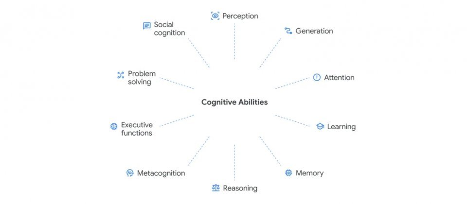 研究团队参考心理学、神经科学与认知科学领域的研究成果,提出一套认知分类体系,涵盖十项关键认知能力:感知、生成、注意、学习、记忆、推理、元认知、执行功能、问题解决与社会认知。谷歌DeepMind认为,要追踪AI能力的发展,不能仅依赖单一任务的表现或个别测试的得分,而应通过完整的认知分类描绘系统的综合能力图谱。