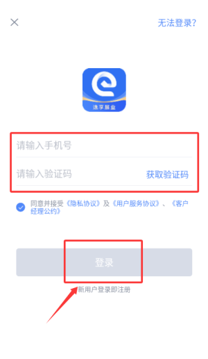2、在登录页面输入您的注册手机号,获取并填写短信验证码,勾选《用户协议》与《隐私政策》,点击“登录”完成身份验证。