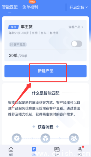 3、成功登录后,您将进入主订单界面。点击右下角或顶部显眼位置的“新建产品”按钮,即可开始创建属于您的信贷产品,设置产品类型、额度范围、适用人群等关键信息,快速对接平台精准推送的客户需求。