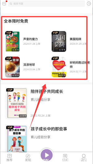 4、点击底部导航栏中的“发现”选项,即可按小说、历史、财经、儿童、心理等细分分类筛选内容,精准找到符合兴趣的音频资源,立即开始收听。