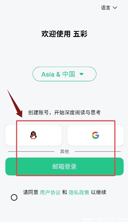 首次使用五彩时,您需要完成简单的登录流程以同步数据并启用全部功能: