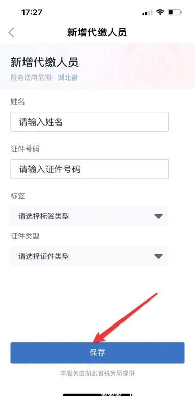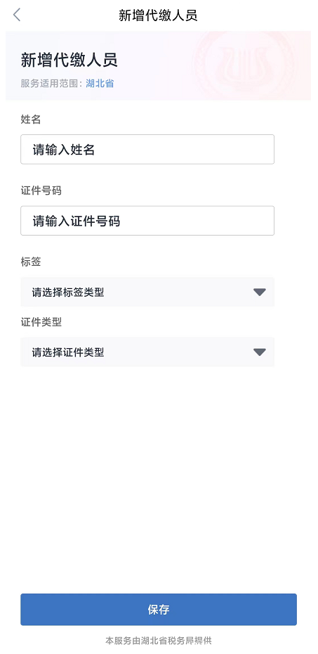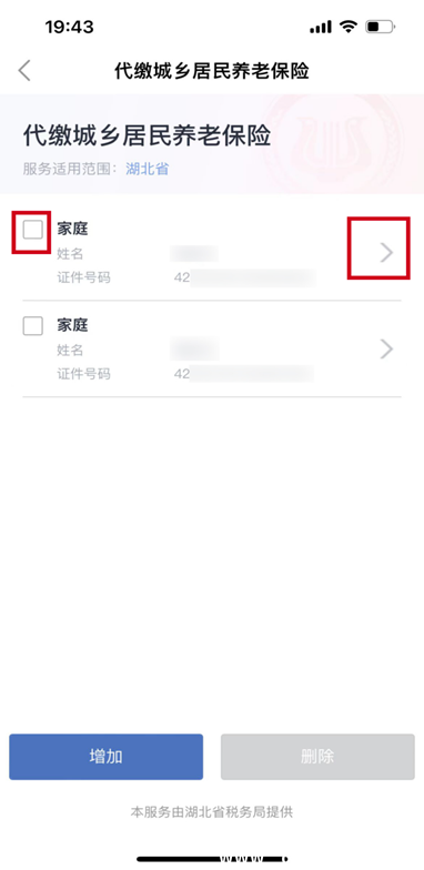 3. 点击“增加”,输入被代缴人姓名、身份证号等信息并保存;