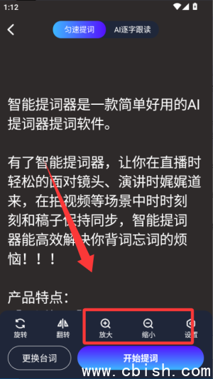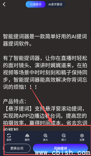 【提词设置】提词板支持全方位自定义:字体大小、颜色、背景透明度、滚动方向等,满足不同光线与设备环境下的阅读需求。