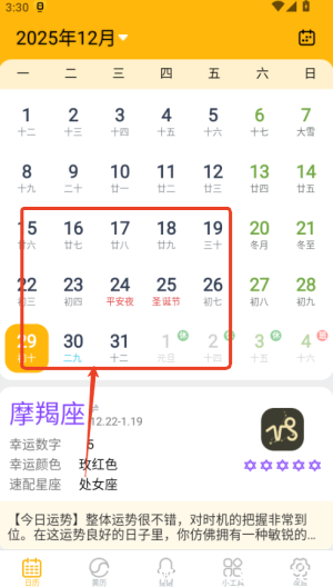 3、App内置多种实用小工具,如日期计算器(计算天数差、倒计时)、节日查询、节气提醒、生肖运势等,帮助你更科学地规划生活与工作,提升时间利用效率。