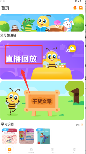 4、利用丰富的图文资源进行自主拓展学习:支持点读功能的电子绘本可实现“哪里不会点哪里”;孩子还能录音跟读并保存作品;家长可在“我的”页面查看详细学习报告,包括学习时长、完成率、薄弱知识点等,便于及时调整学习计划,并定期复习生词,形成良性循环。