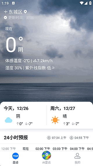 ? 分钟级降水预报:精准到每分钟的降雨/降雪动态预测,支持雷达图动态回放,出门前30分钟精准预警,告别“突然淋雨”尴尬。