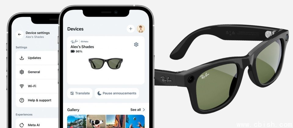 Ray-Ban Meta是Meta与EssilorLuxottica合作于2023年10月推出的AI眼镜,它内建1200画素的超广角相机,支援60秒的1080p高画质影片,可直接串流至Facebook与Instagram;亦配备喇叭与麦克风,可播放串流音乐,支援Meta AI语音助理,电池续航力为4小时,售价299美元。