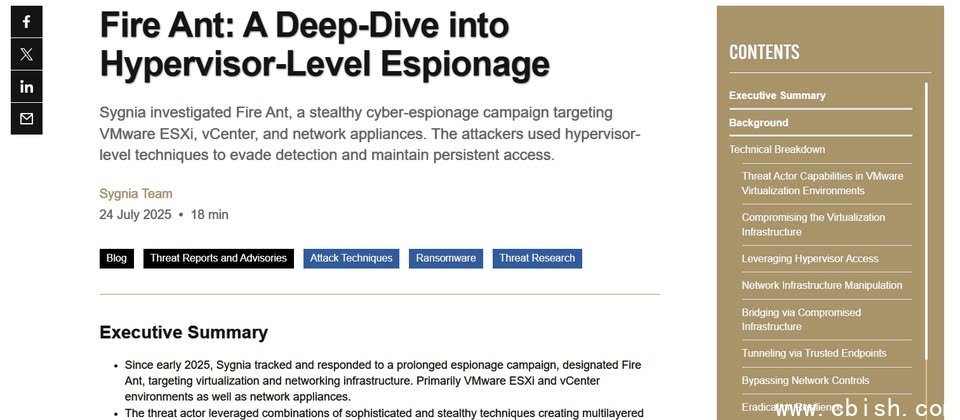 资安业者Sygnia自今年初开始,追蹤及回应由骇客组织Fire Ant的长期网路间谍活动,这些骇客专门针对VMware ESXi、vCenter,以及网路设备而来,透过Hypervisor层级的攻击手法来迴避侦测,并持续在受害组织活动。根据骇客使用的工具与手法,Sygnia研判Fire Ant与UNC3886有所关连。