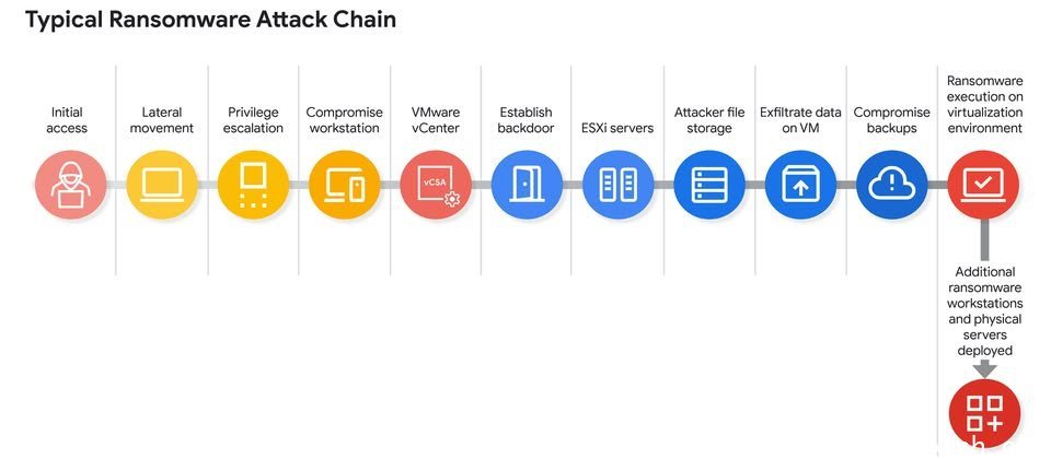 一旦这些骇客在成功完成社交工程攻击并取得有效使用者帐号,就会以此操纵受信任的管理系统,并透过控制AD来转进VMware vSphere环境,建立从虚拟机器管理工具窃取机敏资料并部署勒索软件的管道。GITG指出,这样的做法完全不会产生入侵指标(IoC),并能绕过EDR等资安工具的侦测。