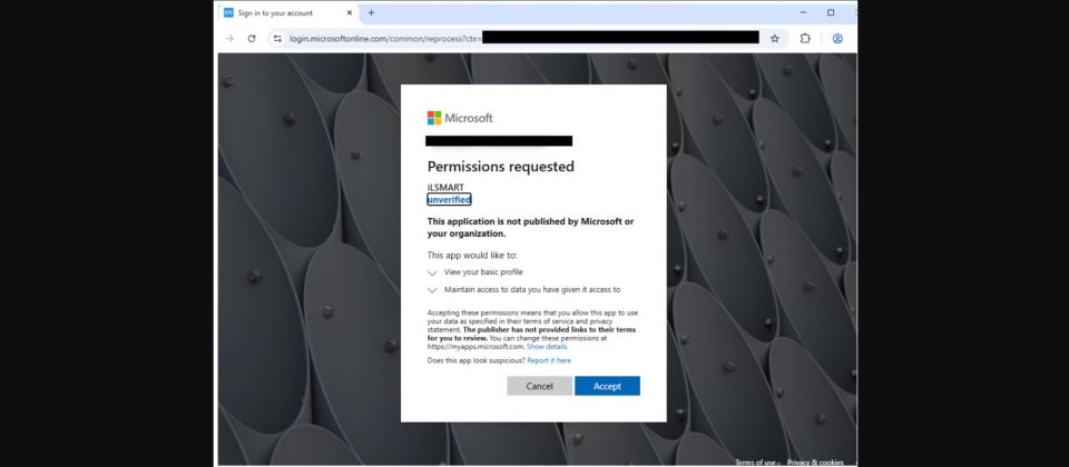 资安公司Proofpoint研究团队发现,攻击者持续滥用微软OAuth应用注册机制,假冒企业常用的云端服务,诱导受害者授权伪造应用,再将其导向仿造的微软登入页面,藉此拦截帐号密码及多因素验证(MFA)会话资讯。