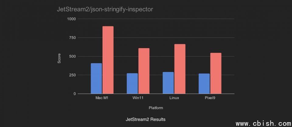 V8官方透过JetStream2基準测试指出,新版引擎在json-stringify-inspector项目的测试,各平台普遍呈现两倍以上的效能改善。此次升级适用于多数典型使用情境,大部分开发者不需修改程序,即可获得新版V8引擎性能提升的好处。