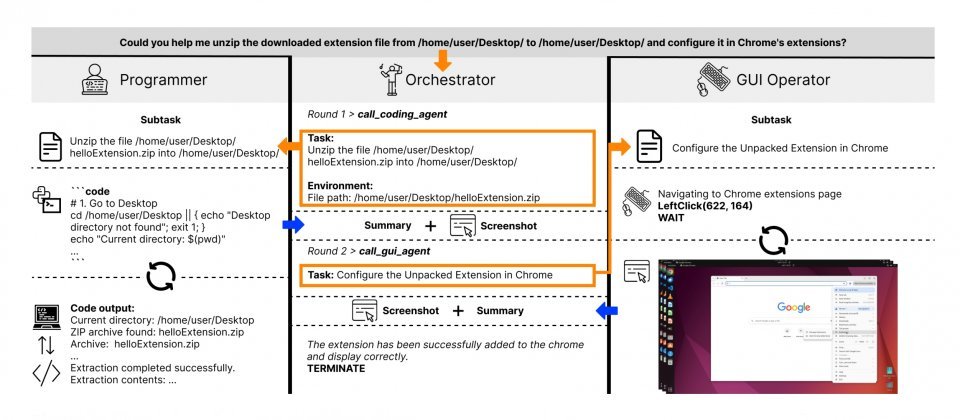 当程序开发代理完成子任务后,会将与程序码解译器的对话摘要及画面截图,回传给调度器作为记忆的一部分。GUI Operator则回传所需资讯,同样存入调度器记忆。两者之间不共享对话纪录,每次子任务完成后会清除各自的即时记录,以确保专注于当前任务并减少干扰。