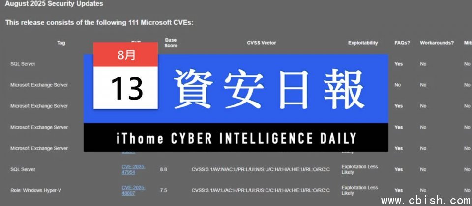 SAP于本週二(8月12日)发布本月例行更新(Security Patch Day),一共修补15项资安漏洞,其中有两项接近满分的资安漏洞CVE-2025-42950、CVE-2025-42957,格外引人关注。