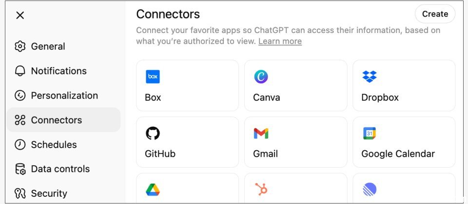 OpenAI 6月首先为ChatGPT新增连接器功能,允许付费(Pro、Plus、Team)订阅用户存取第三方资源。包括Gmail、Google行事曆(Calendar)、联络人(Contacts)。本周OpenAI先后宣布是开放Pro和Plus用户ChatGPT透过连接器存取Gmail、Google Calendar及Contacts。