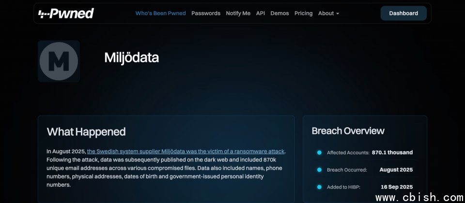Milj?data在瑞典的业务覆盖广泛,长期为市政单位与学校提供人力资源与职业安全相关系统,例如病假管理与事故通报。事件发生后,部分地区政府与学校的服務中斷,瑞典媒体还报道,黑客组织Datacarry自称作案并索要约16.8万美元赎金,并已于9月14日公开部分数据。由于此次外泄数据包含完整的身份属性,后续可能引发钓鱼邮件、社交工程或账户接管等衍生威胁。