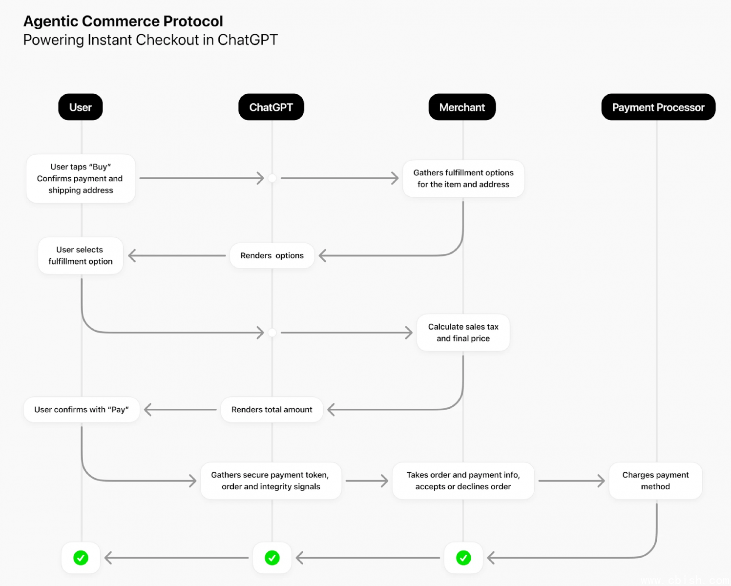 因此,当用户下单时,ChatGPT会通过ACP将必要的订单信息发送至商家后台,商家可自主决定是否接受订单,并利用原有的供应商系统处理支付,按常规流程完成发货与售后服务。