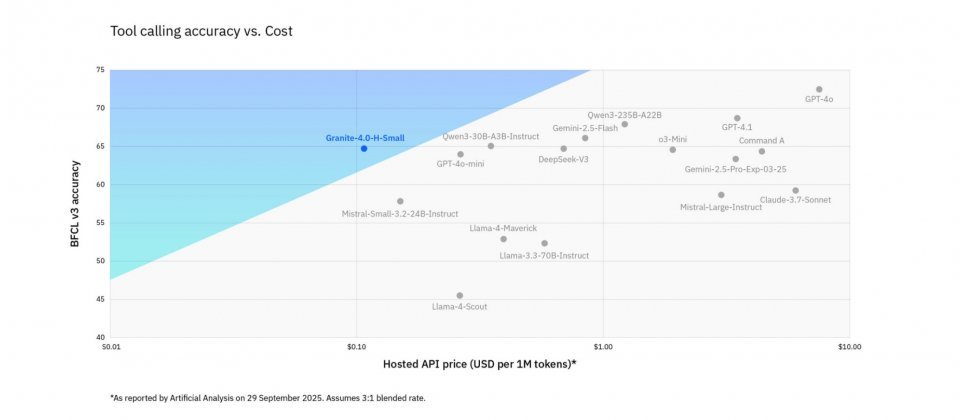 Granite 4.0的目标是以更小参数量,接近或优于同级别开源模型的表现,特别是在指令遵循、工具调用与复杂RAG任务方面。IBM表示,H-Small型号在Stanford HELM的IFEval与Berkeley Function Calling v3等基准测试中具备竞争力,并计划在年内补充更大与更小的型号,以及独立的推理能力强化变体。