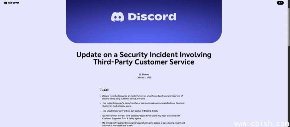 10月3日,即时通讯软件Discord发布安全公告,指出其第三方客服供应商遭到未经授权人士入侵,影响了曾与Discord客户支持团队、信任安全团队联系的部分用户。该公司强调,这些未授权人员并未直接访问Discord平台本身,用户与客户支持团队、信任安全团队的对话和互动内容也未被访问。事件发生后,Discord立即撤销了该供应商对工单系统的访问权限,并与执法部门紧密合作展开调查,同时通过电子邮件通知受影响的用户。至于具体有多少人受到影响,以及该第三方供应商的身份,Discord并未透露。