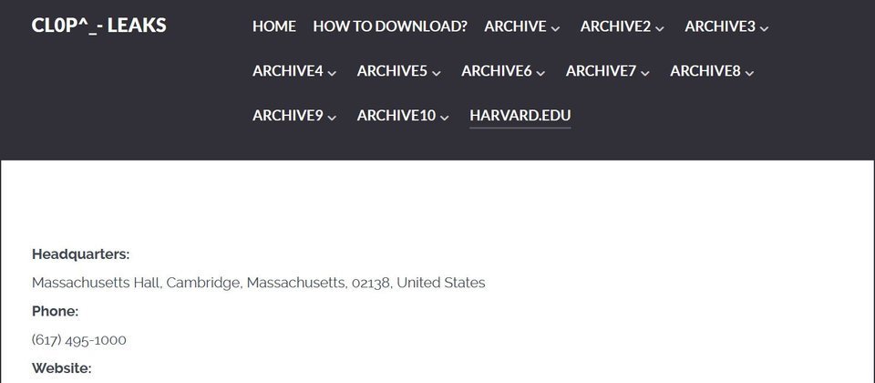 根据安全新闻网站Bleeping Computer的报道,近日Clop将哈佛大学列入数据泄露网站,疑似通过ERP系统Oracle E-Business Suite(EBS)的零日漏洞得手。对此,哈佛大学表示正在展开调查。