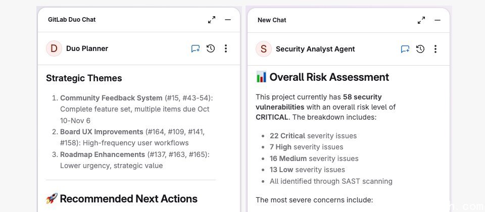 GitLab 18.5加入两项新的人工智能代理功能。首先是针对产品经理设计的Duo Planner代理,能分析待办清单并运用RICE或MoSCoW等优先排序框架,协助评估开发项目的重要性与时程配置,减少手动整理数据的负担。另一项Duo安全分析代理则能自动列出项目漏洞,检视CVE与EPSS分数调整严重度,并建立对应议题(Issue),让安全分析师能更快厘清风险并采取行动。
