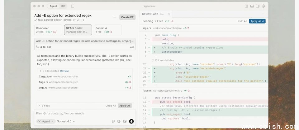 除了模型更新,Cursor 2.0也推出了以代理为核心的新界面。新的工作流程允许用户同时启动多个AI代理并行处理任务,系统可通过Git的多工作树功能或远程执行环境隔离各代理作业,避免冲突。开发者可专注于成果而非文件操作,并在需要时切换回传统IDE界面。这种多代理设计可让不同模型同时尝试解决同一问题,系统再自动筛选最优结果,特别有助于应对高难度或需探索多种解法的开发任务。