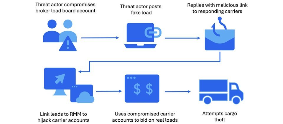 周一,安全公司Proofpoint披露了一起针对运输业和物流企业的攻击行动,正是这种攻击模式的典型案例。攻击者通过网络入侵窃取账户及权限,冒充合法身份竞标货物,并与犯罪团伙合作,在运输途中窃取货物并转售牟利。在整个攻击流程中,合法远程管理工具的滥用是关键环节。Proofpoint强调,虽然本次调查的事件发生在北美,但此类网络犯罪在全球各地均会发生,其中事件最频繁的地区包括巴西、墨西哥、印度、美国、德国、智利和南非。