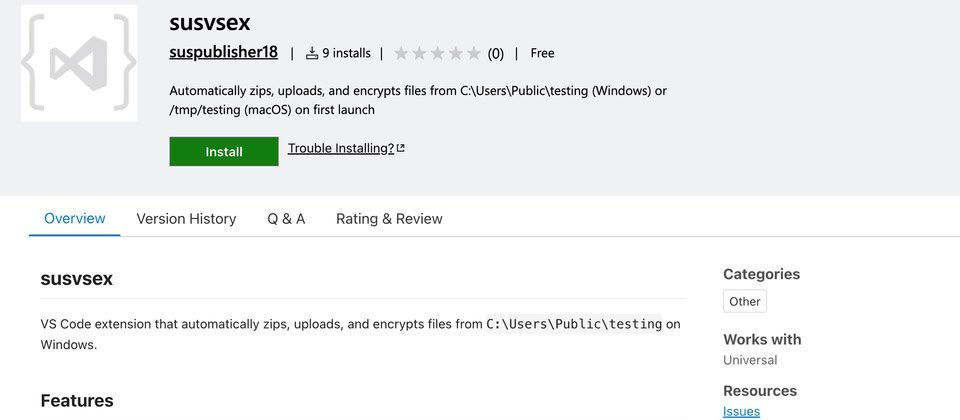 安全公司Secure Annex近日在VS Code扩展市场发现一个名为susvsex的恶意扩展程序。该扩展的作者在说明页面竟公然宣称其具备勒索软件功能:一旦启动,便会自动加密指定文件夹中的文件,打包为ZIP文件并上传至攻击者服务器,且该程序可同时攻击Windows和macOS系统。令人震惊的是,开发者如此明目张胆地公开程序的勒索功能,竟能通过微软的审核流程,引发Secure Annex的注意。