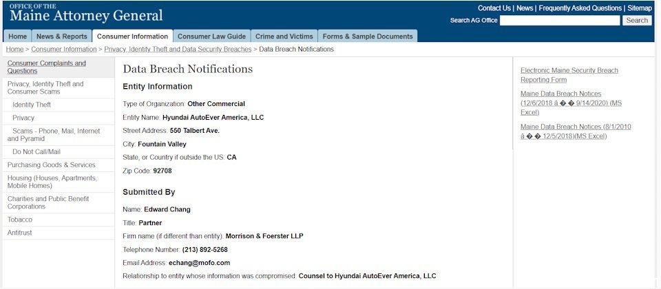 韩国汽车厂商现代(Hyundai Motors)旗下的IT供应商AutoEver America日前发布公告,今年年初公司内部系统遭黑客攻击,导致车主驾照及社会安全号码等个人信息泄露。