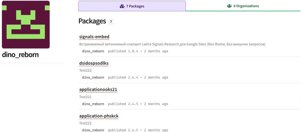 这批包共有7个,均由名为dino_reborn的开发者上传,发布时间介于今年9月至11月,其中6个包含恶意代码,最后一个功能不同,用于生成恶意网页。Socket向NPM平台报告后,NPM已将这些包封禁并列入监管名单。