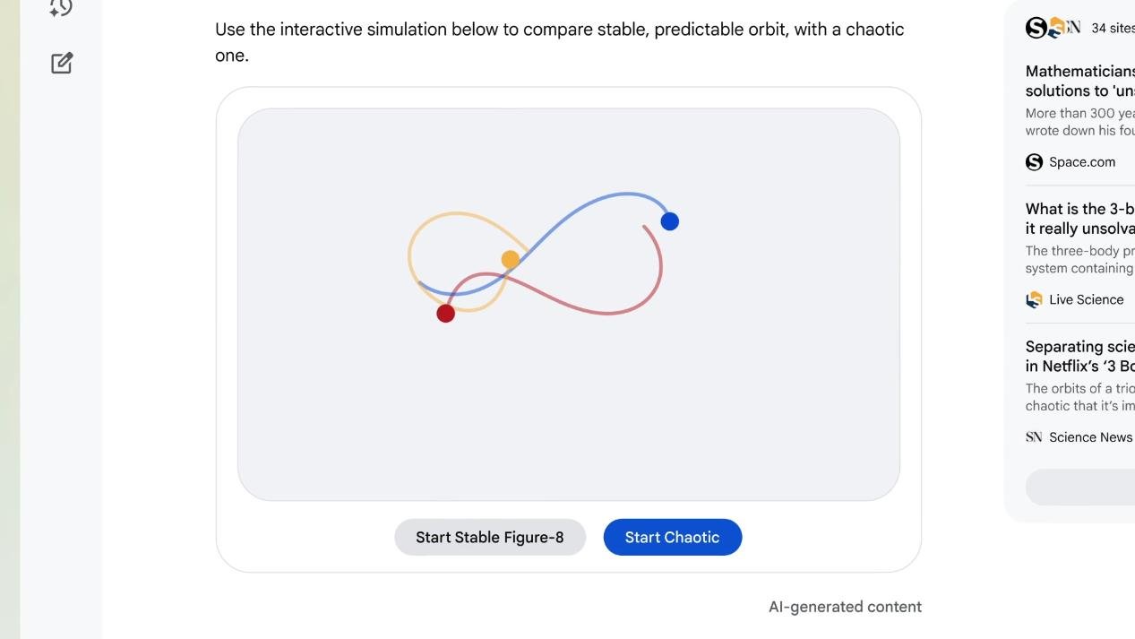 比如,你在研究“三体问题”时,搜索结果会自动生成一个可拖拽的引力模拟器——你可以调整三个天体的质量、初速度,亲眼看到轨道如何变化,误差如何累积。这不再是教科书里的公式,而是可触摸的物理实验。