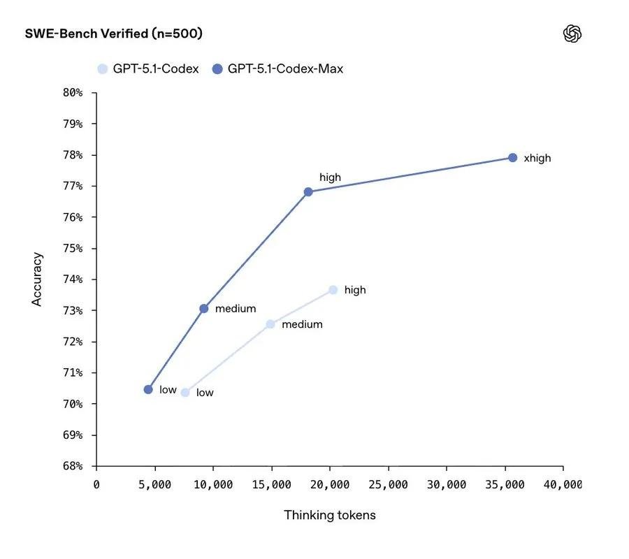 - SWE-bench Verified:在相同推理强度下,准确率更高,同时节省约 30% 的 Token 消耗