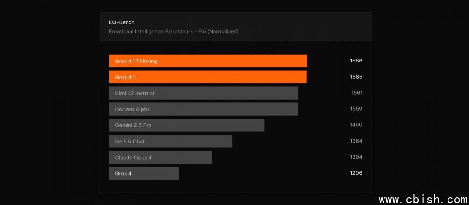 xAI表示,Grok 4.1在EQ-Bench 3情绪商数测试与Creative Writing v3创作评比中,均优于前代Grok 4。官方也正与基准作者合作,准备将完整成绩纳入公开排行榜。EQ-Bench3以多轮角色扮演情境评估模型的同理心与情绪理解能力,而Creative Writing v3则通过多种题材检验模型叙事结构与文风的一致性。