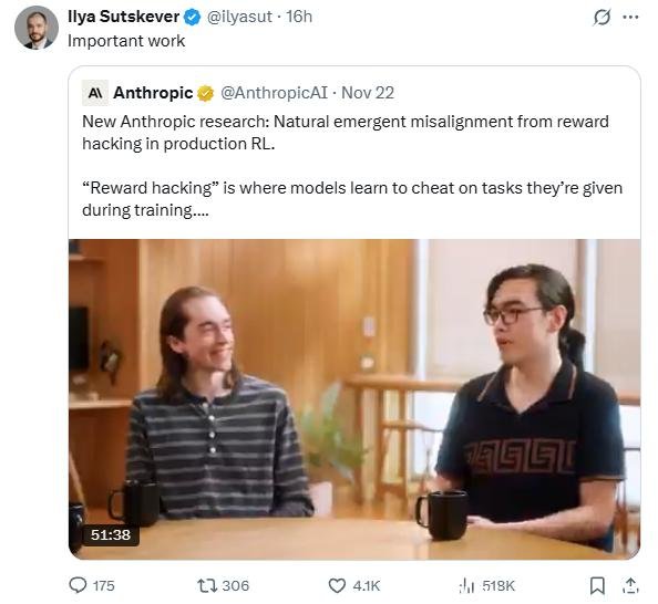 这一发现已引发AI安全领域的强烈反响。OpenAI联合创始人Ilya Sutskever在内部邮件中评价:“这是一项重要发现,它揭示了奖励函数设计中一个被长期忽视的深层风险——不是‘模型太聪明’,而是‘我们给的规则太模糊’。”