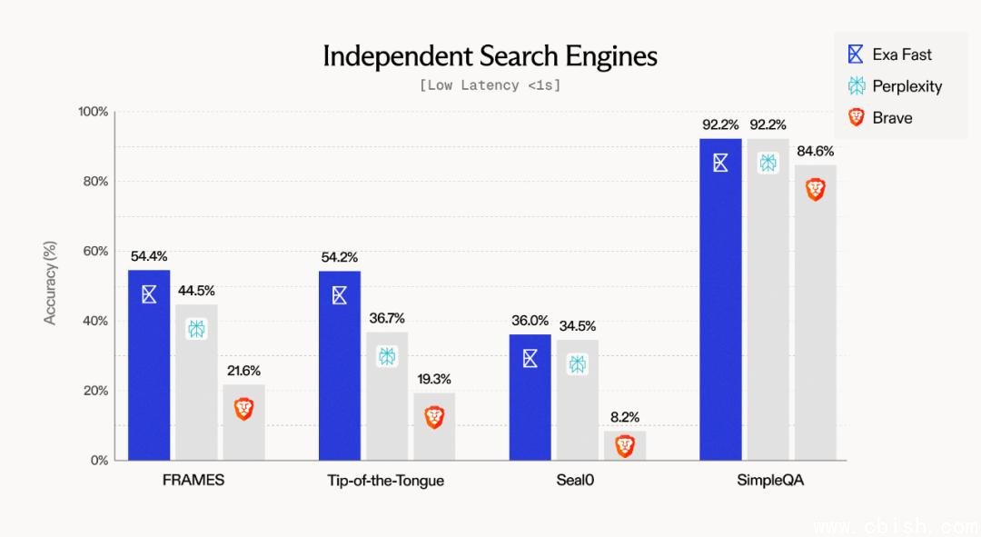 传统 AI 搜索平均响应时间在 800ms–1200ms,而 Exa Fast 在本次更新后,稳定控制在 480ms 以内——比行业平均快 40% 以上,且准确率在权威测试集(MMLU、LiveQA、HotpotQA)中高出 12–18%。