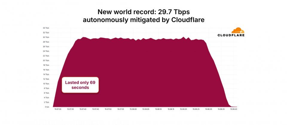 Cloudflare发布的2025年第三季度DDoS威胁报告指出,僵尸网络Aisuru在本季度持续升级攻击火力,以最高29.7 Tbps流量与14.1 Bpps包率创下新纪录。Cloudflare估计,Aisuru掌控约100万至400万台受感染主机,几乎每天发动多起超过1 Tbps与1 Bpps的超大规模攻击,平均每日约14起,成为本季度最具破坏性的攻击来源。