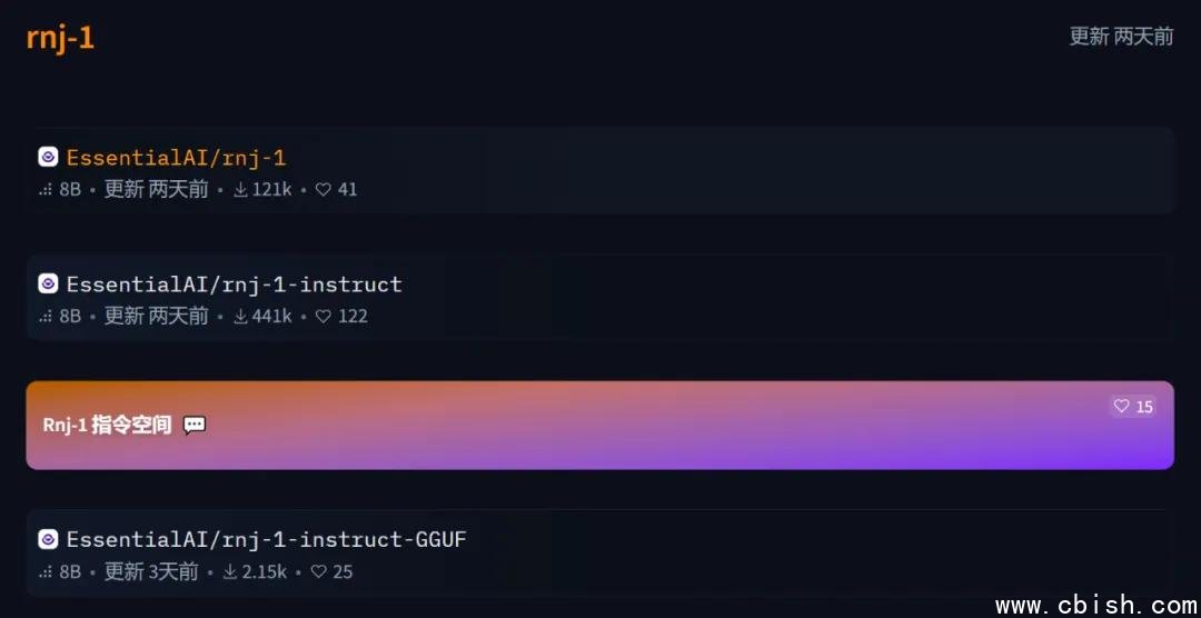 目前,RNJ-1 已在 Hugging Face 开源,支持 Transformers、vLLM、Ollama 等主流框架。模型权重、训练数据配方、推理脚本全部公开。没有闭源后门,没有商业限制——这在当前 AI 领域,几乎是一种“反常”。