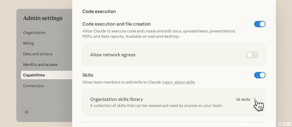 此次更新的核心在于解决企业大规模应用的痛点。过去,Skills主要由用户自行创建或使用官方示例,而现在,Claude Team与Enterprise版管理员可在后台集中管理组织内技能的启用与推送。