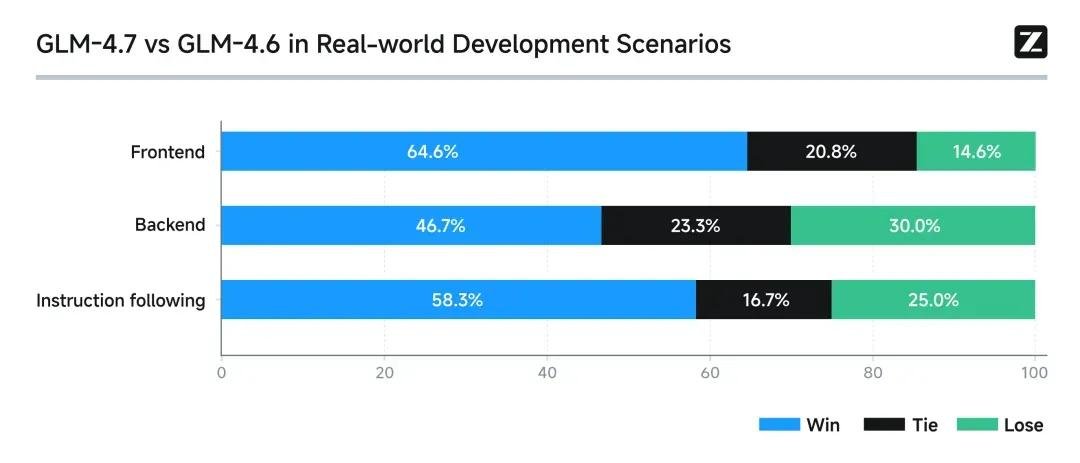 在多个权威代码基准测试中,GLM-4.7 实现了对主流闭源模型的全面追赶甚至超越: