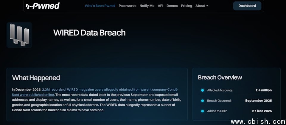 根据分析,此次泄露的《Wired》数据涵盖1996年4月至2025年9月期间,泄露的信息包括订阅用户ID、电子邮件地址、显示名称;部分用户还被泄露了真实姓名、电话号码、出生日期、所在地或完整地址、性别等信息。除《Wired》外,该黑客还预告未来数周将公布约4000万条其他数据。