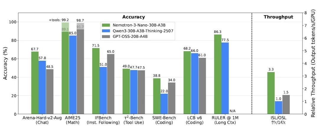 很多人以为“小模型”只能做简单任务。Nemotron 3 Nano用数据打脸。