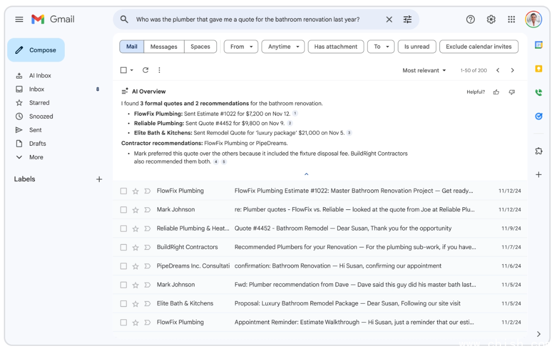 此次更新被Google定位为“Gmail进入Gemini时代”的重要里程碑。在邮件数量持续增长、对话串越来越长的情况下,Gmail不再只强化搜索与分类,而是尝试让AI直接理解邮件内容,协助用户快速掌握重点并完成决策。