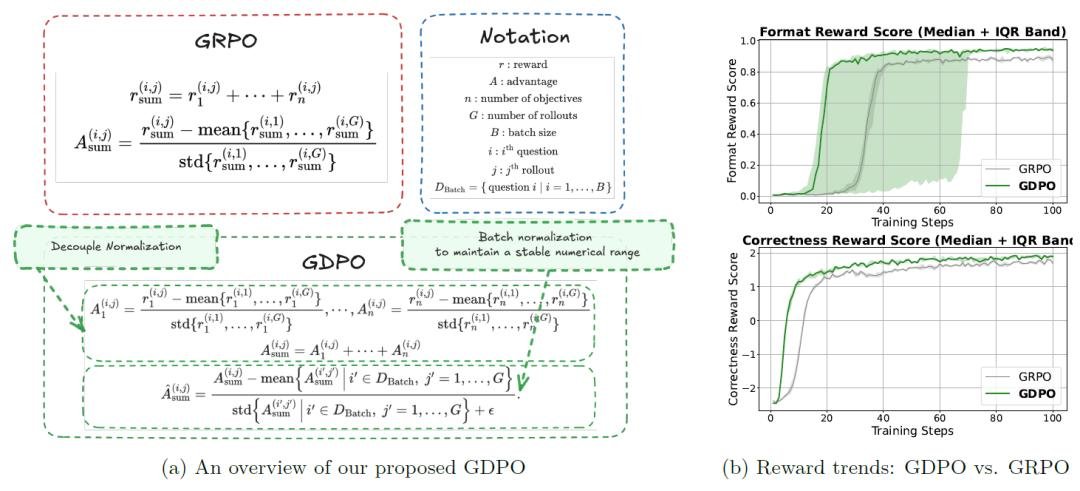 NVIDIA团队提出的GDPO(Group reward-Decoupled Normalization Policy Optimization),不是小修小补,而是从底层重构了奖励处理逻辑: