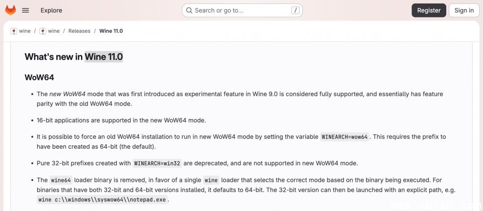 Wine开发团队发布Wine 11.0正式版,更新重点之一是全新WoW64模式正式获得全面支持。该模式最早在Wine 9.0中作为实验功能推出,如今已被认定为稳定可用的方案,并在全新WoW64模式下加入对16位应用程序的支持,使部分更早期的程序能够在以64位为主的Linux和macOS环境中继续运行。