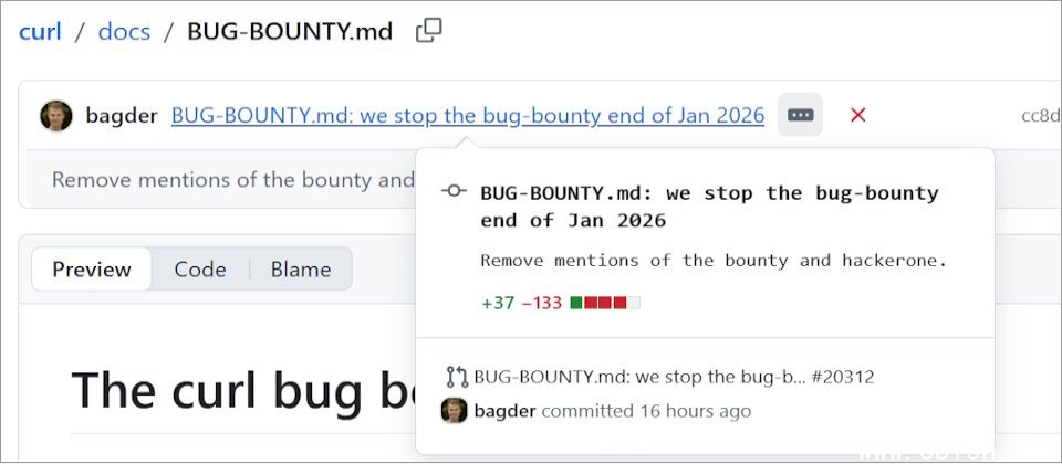 由于接到大量外界通过AI生成的低质量漏洞报告,Curl项目维护者本周宣布终止漏洞赏金计划。
