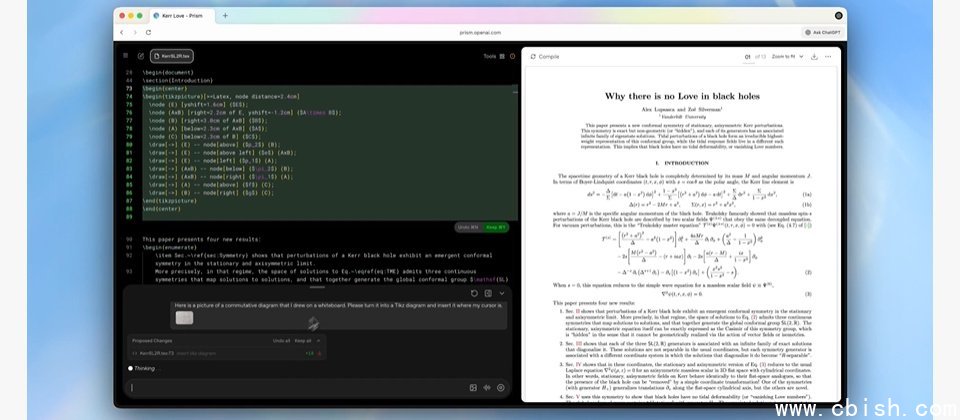 OpenAI于周二(1月27日)推出了Prism服务,该服务基于OpenAI收购的云端LaTeX平台Crixet构建,并整合GPT-5.2,打造了一个专为撰写科学文档、修订内容和团队协作设计的AI原生云端工作区。