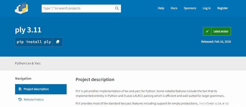 在项目状态方面,PLY原作者David Beazley已公开表示不再维护该项目,目前PyPI上的最新版本仍停留在2018年发布的3.11版。