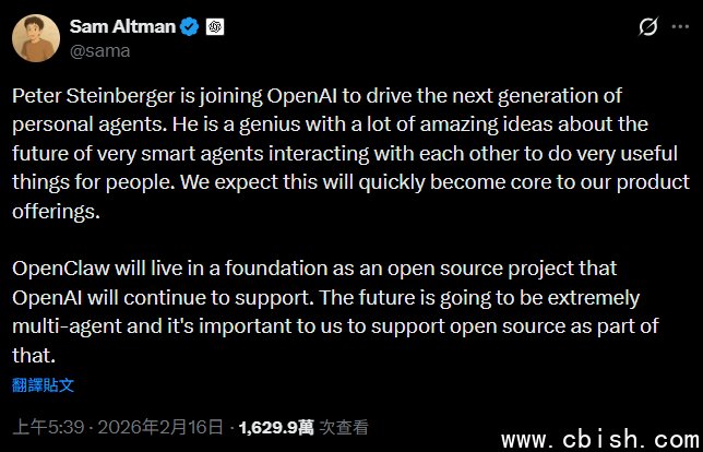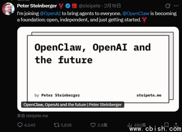 开发开源代理型AI系统的Peter Steinberger本周宣布加入OpenAI,而OpenClaw将以开源基金会形式存在,由OpenAI持续支持。
